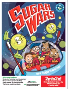 The campaign for 2016 is “Sugar Wars” encouraging children to join the fight against sugar by brushing and flossing consistently. As parents it is your duty to encourage your child to practice the best oral hygiene possible by doing the following every day: